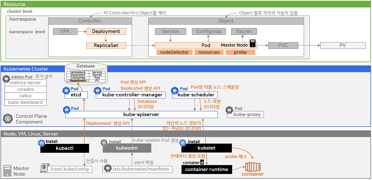 - kube-controller-manager가 metrics-server와 HPA를 지속적으로 확인하여 Deployment를 통해 스케일링 진행.