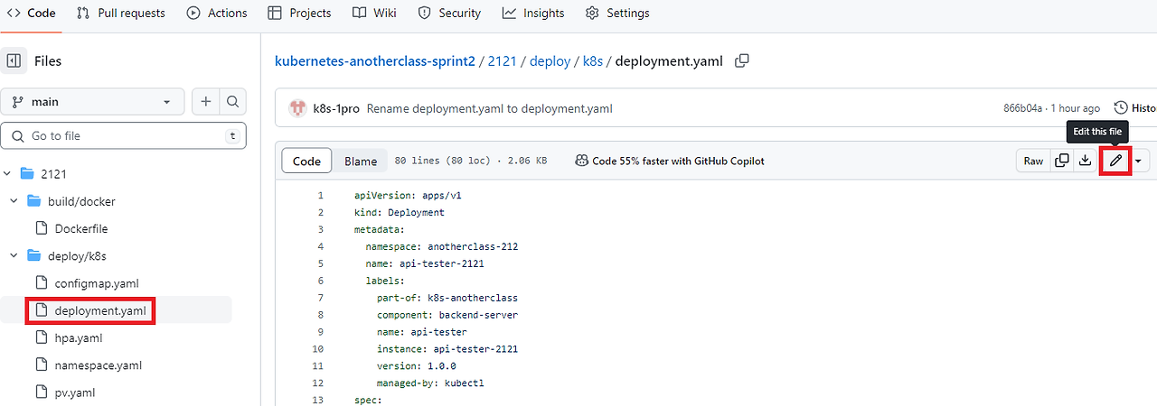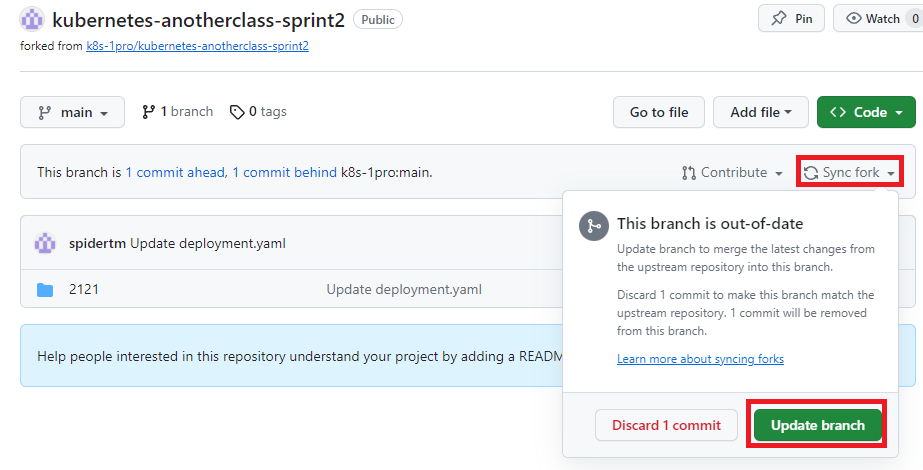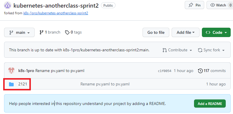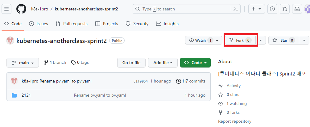 Repository URL : https://github.com/<Your-Github-Uesrname>/kubernetes-anotherclass-sprint2.git