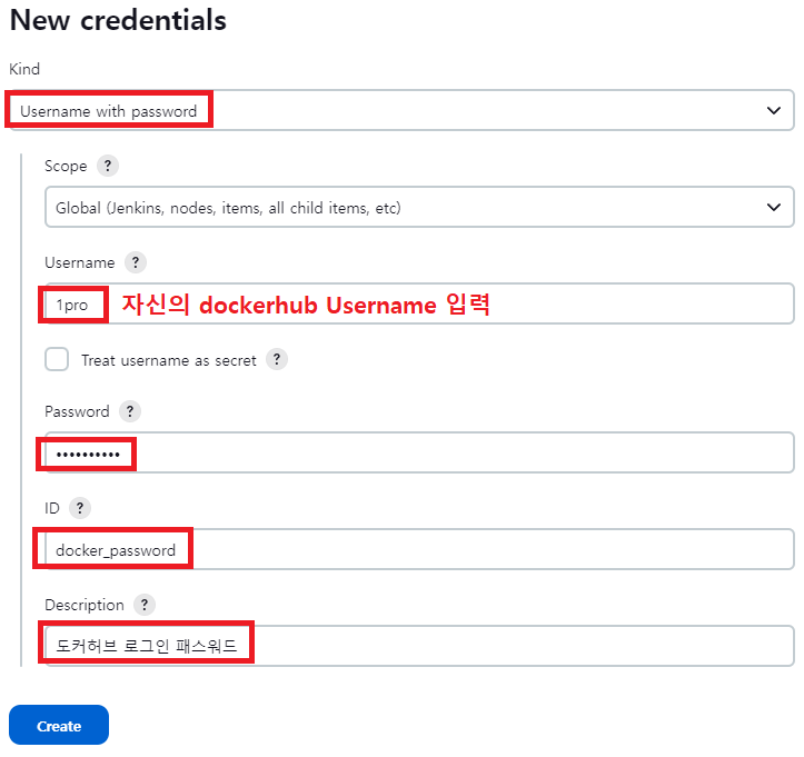 - dockerhub 접속정보 및 kubernetes confg를 위한 credential 생성